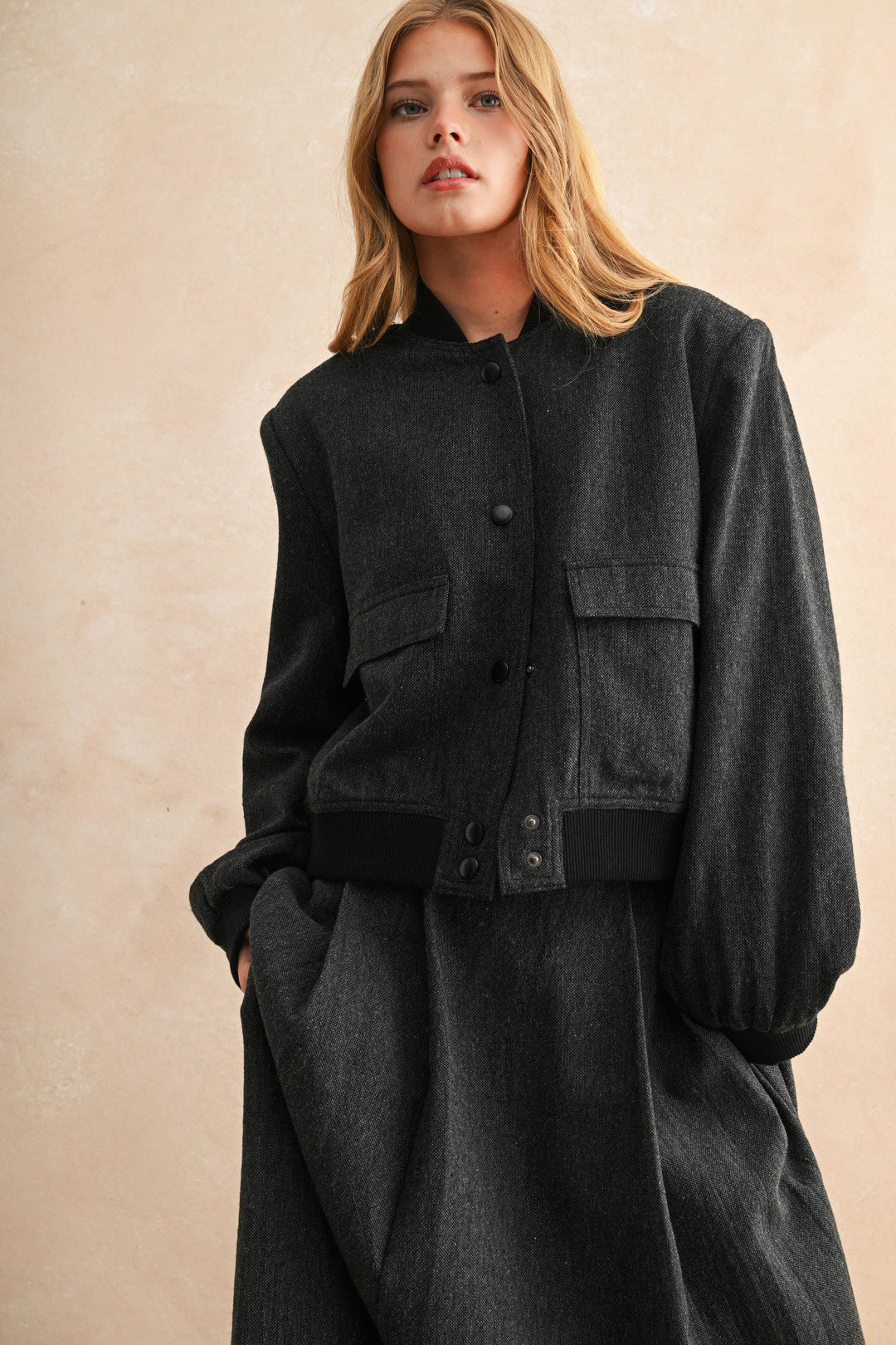 Pleated Balloon Sleeve Blouse Jacket