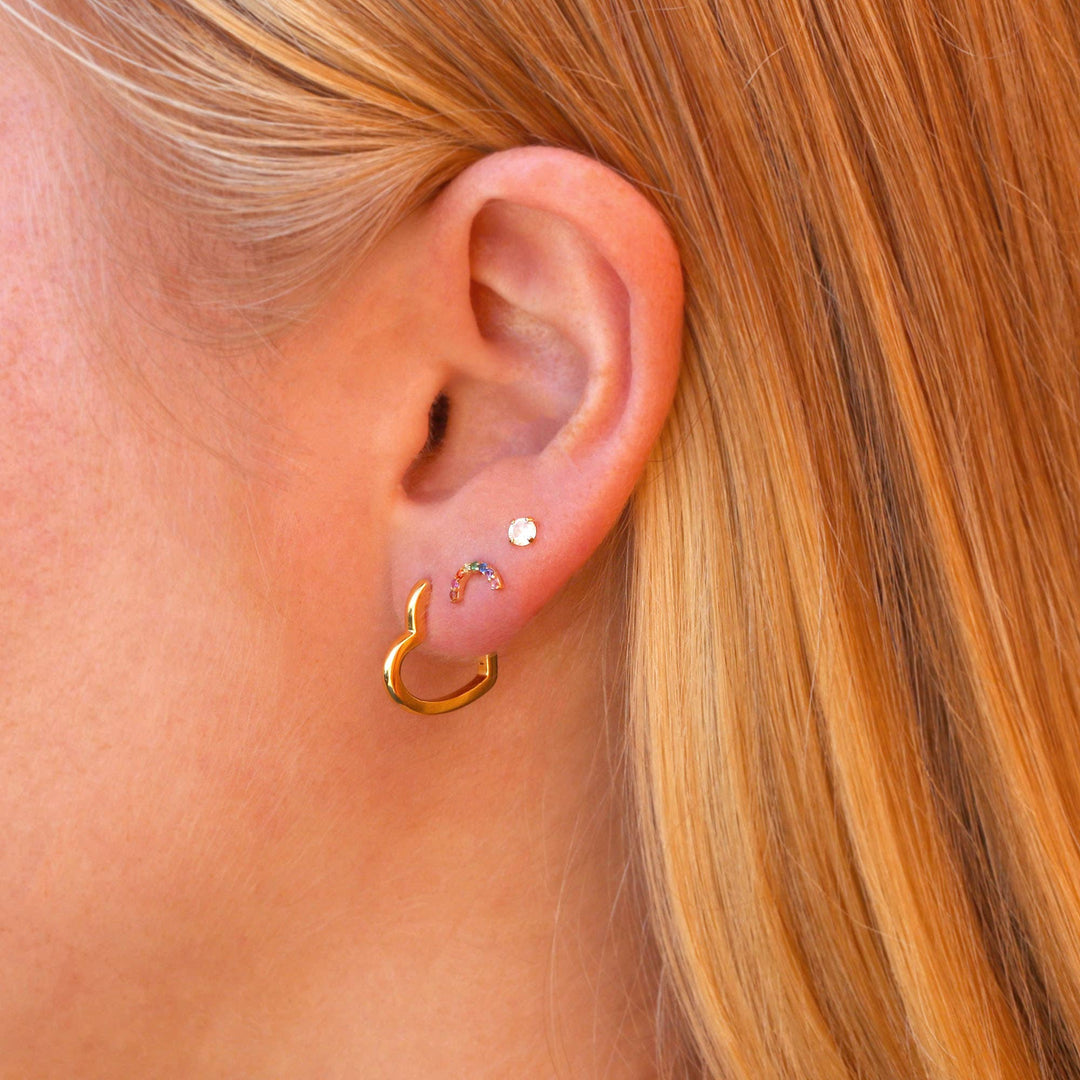 Open Heart Enamel Hinged Huggie Hoop Earrings