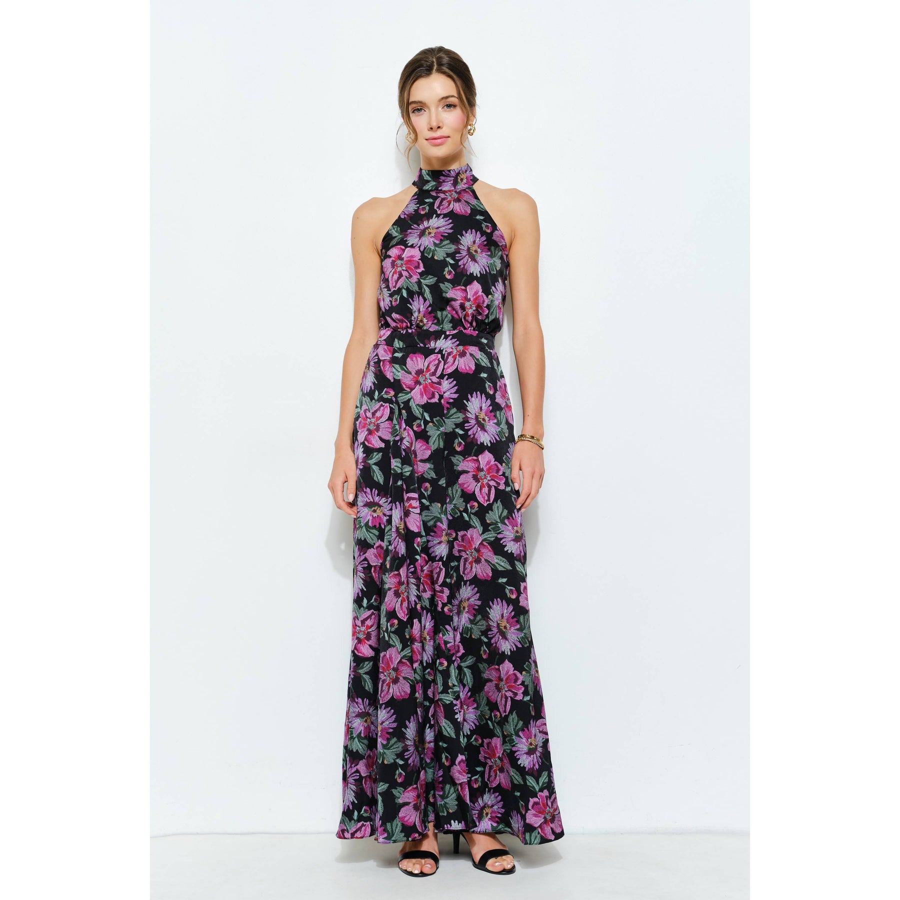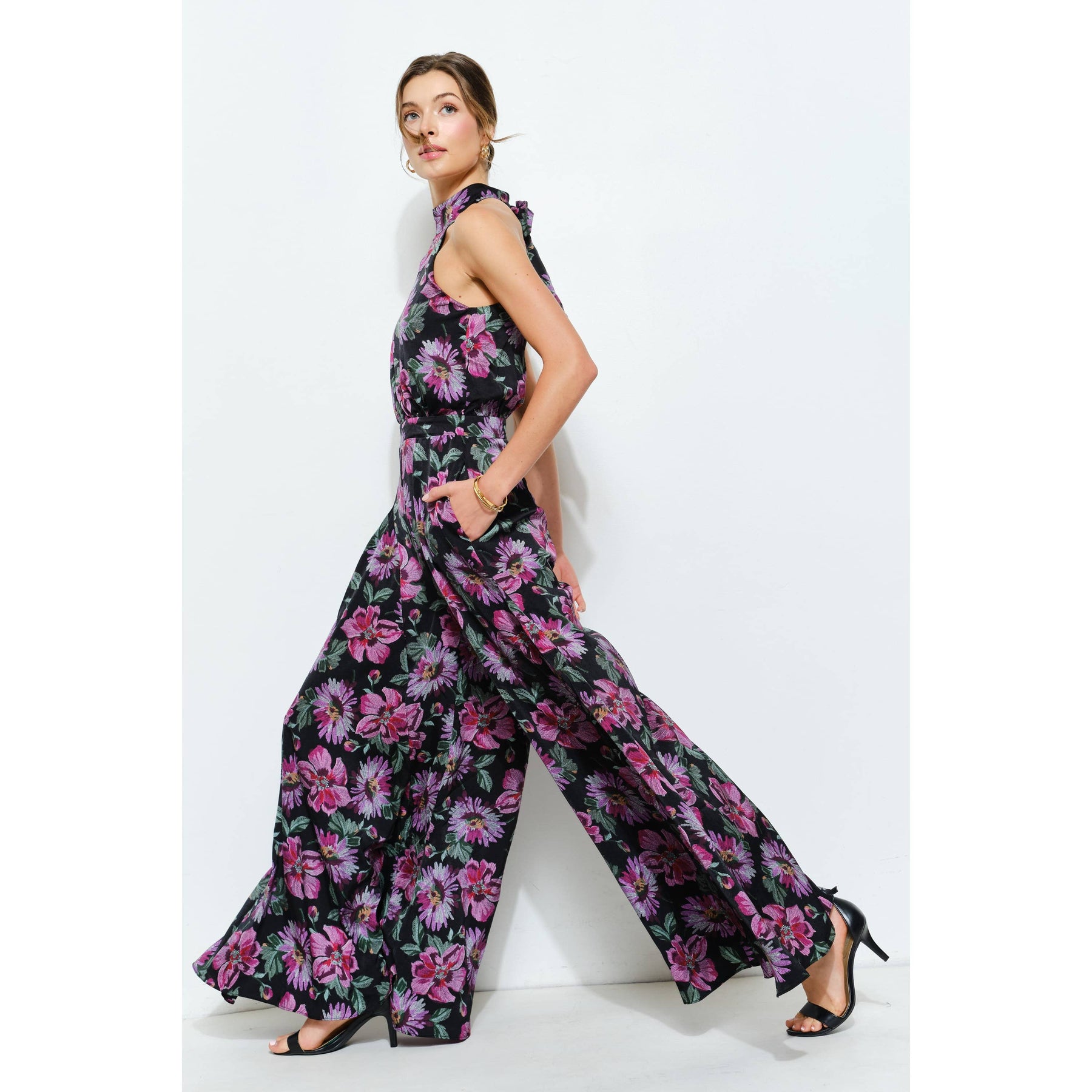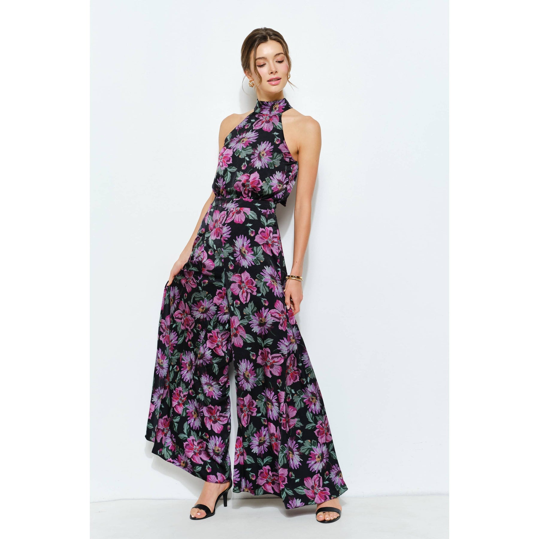 • Key Feature: Wide-leg floral jumpsuit with elegant halter neckline