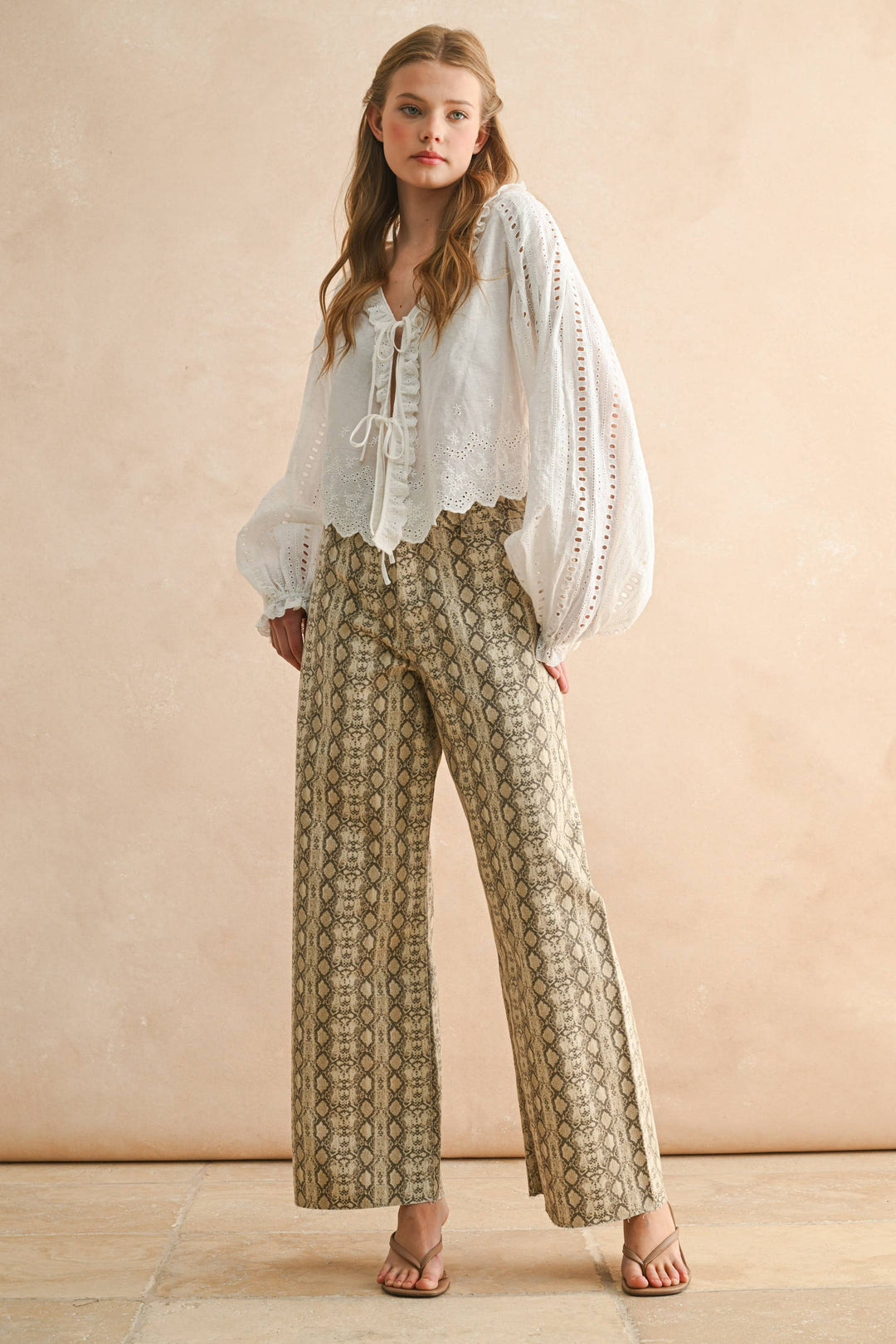 The Snake Print Pants are sleek, eye-catching trousers designed to bring edgy sophistication to your wardrobe. Perfect for transitional seasons, these pants combine bold style with all-day comfort, making them ideal for both workdays and nights out.